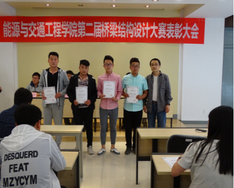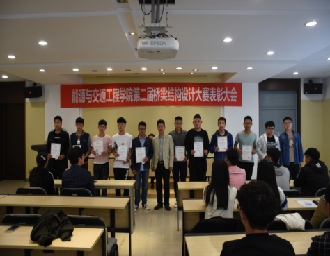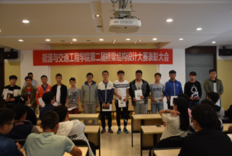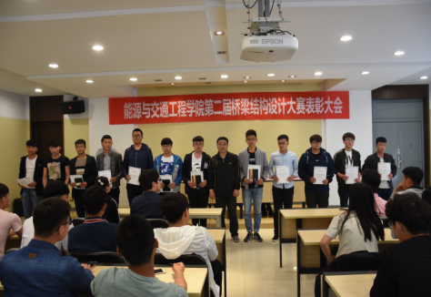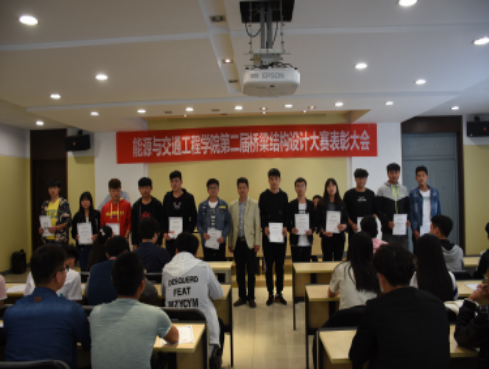 表彰大会首先由赵书记宣读《关于表彰能源与交通工程学院第二届桥梁结构设计大赛优秀团队的决定》;接着表彰一等奖1支队伍、二等奖3支队伍、三等奖6支队伍、优胜奖12支队伍;大会最后由戚院长总结发言,戚院长从关心学生专业发展角度出发,希望学生们学好专业知识,鼓励学生们拥有积极向上的青年心态,坚定学生们的学习步伐,做一名有担当的有为少年,字里行间里透露出院领导、老师对学生成长成才的关注。