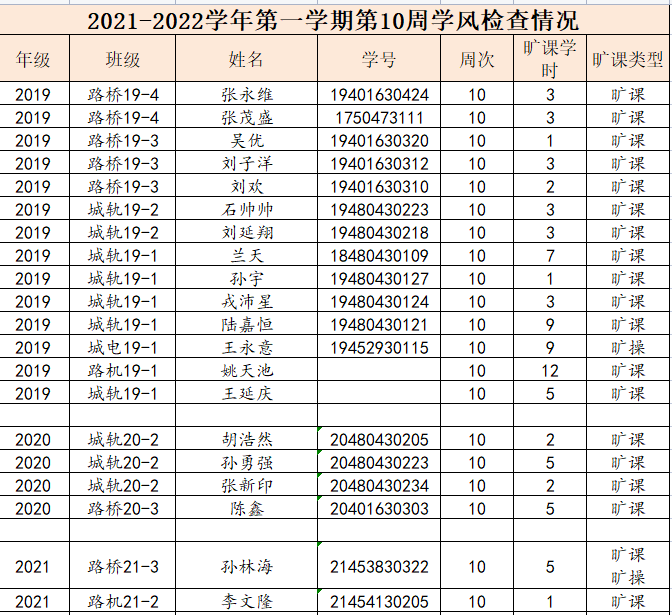 现将学院2021-2022学年第一学期第7周的文明修身检查结果进行通报,希望广大同学引以为戒。