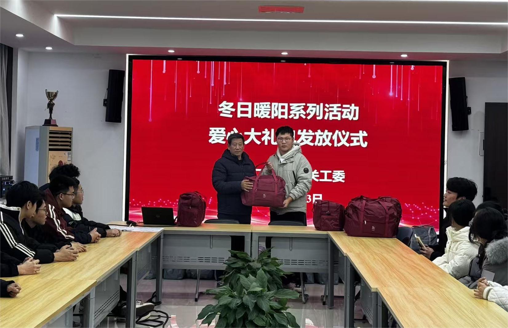 12月23日,交通工程学院关工委“冬日暖阳系列活动——爱心大礼包发放仪式”在利亚楼b313温情启幕,学院关工委常务副主任赵武、副主任李珂、组织员赵阳培与受助学生代表齐聚一堂,共同传递冬日里的暖心关怀。